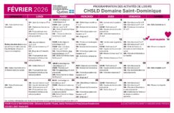 Calendrier des activités – Février 2026